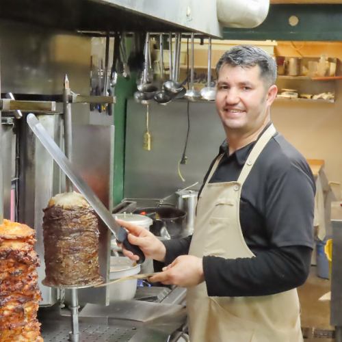 【◆ライブ感満載◆】シェフの技を間近に、視覚でも味わうオープンキッチン! 客席から見えるキッチンでは、トルコ人シェフが腕を振るう活気ある風景が広がります。奥でくるくると回る大きなドネルケバブは迫力満点!パントリーには野菜やお肉をふんだんに使った日替わりのオーブン料理や煮込み料理が並びます。